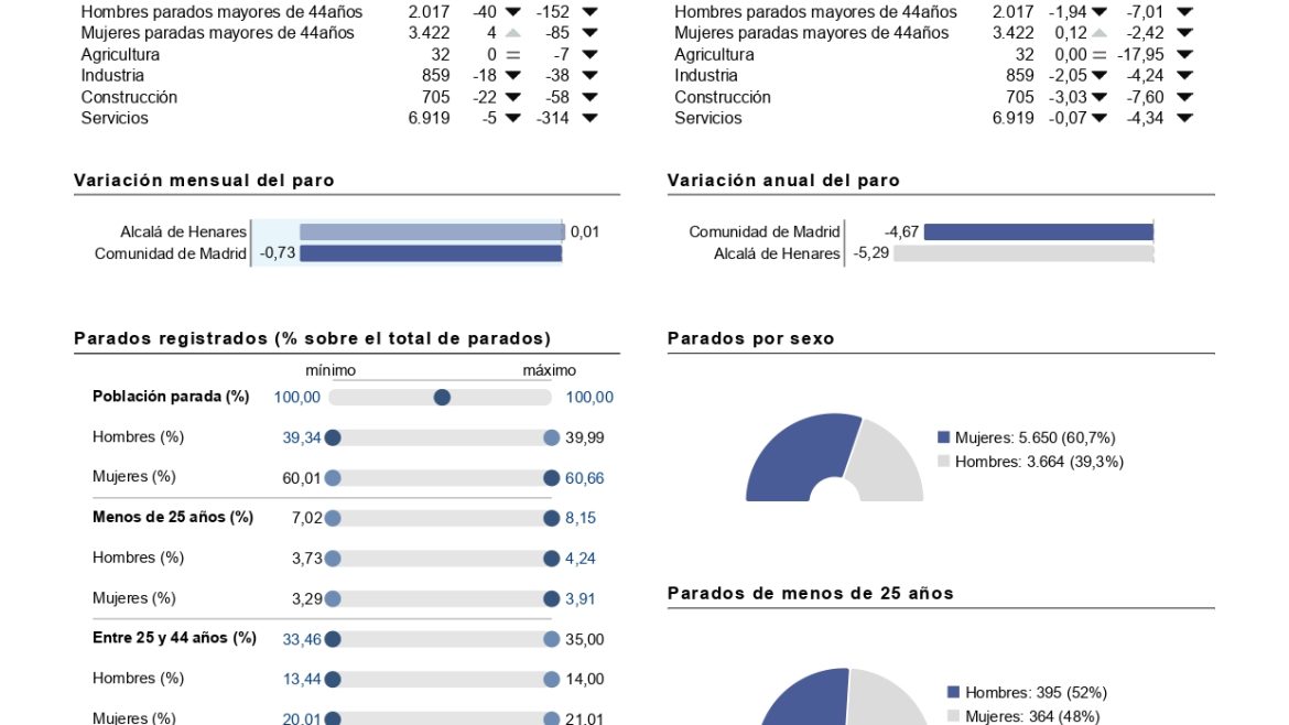 A nivel regional, la Comunidad de Madrid registró un descenso del paro del 0,73% mensual y del 4,67% interanual, mostrando un comportamiento más favorable que el observado en Alcalá.