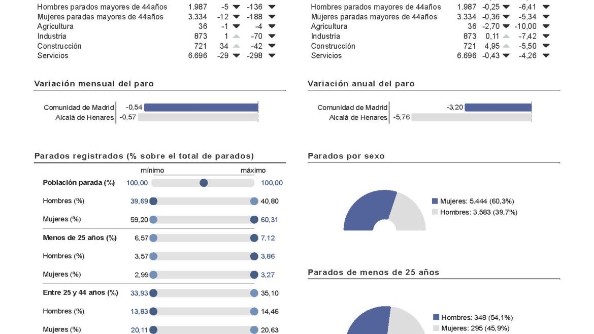 El número de personas registradas como desempleadas en Alcalá de Henares se situó en 9.027 al cierre de diciembre de 2025. Esto supone un descenso mensual del 0,57 % (52 personas menos que en noviembre) y una caída interanual del 5,76 % (552 personas menos que en diciembre de 2024), según los datos del Servicio Público de Empleo Estatal (SEPE).