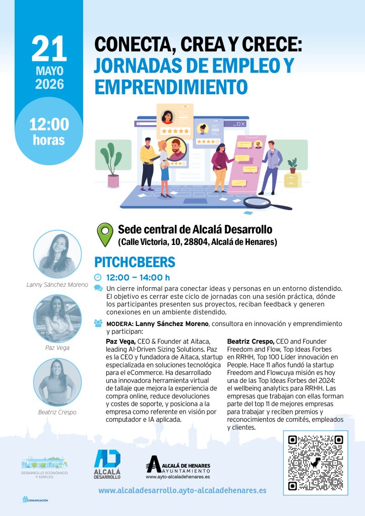 Dentro del ciclo de jornadas formativas “Conecta, crea y crece: jornadas de empleo y emprendimiento”, que Alcalá Desarrollo ha preparado para el curso 2025/26, te invitamos a participar en la próxima, una jornada imprescindible para quienes quieren impulsar su futuro profesional: